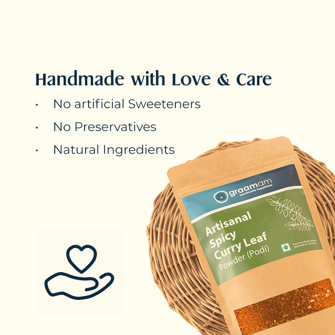 Turn on your taste buds with our Andhara Spicy Curryleaf Podi (Chutney Powder), perfectly spiced for a delectable experience. This chutney powder combines naturally grown, locally sourced curry leaves with a rich mix of traditional spices, offering a vibrant and authentic flavor.